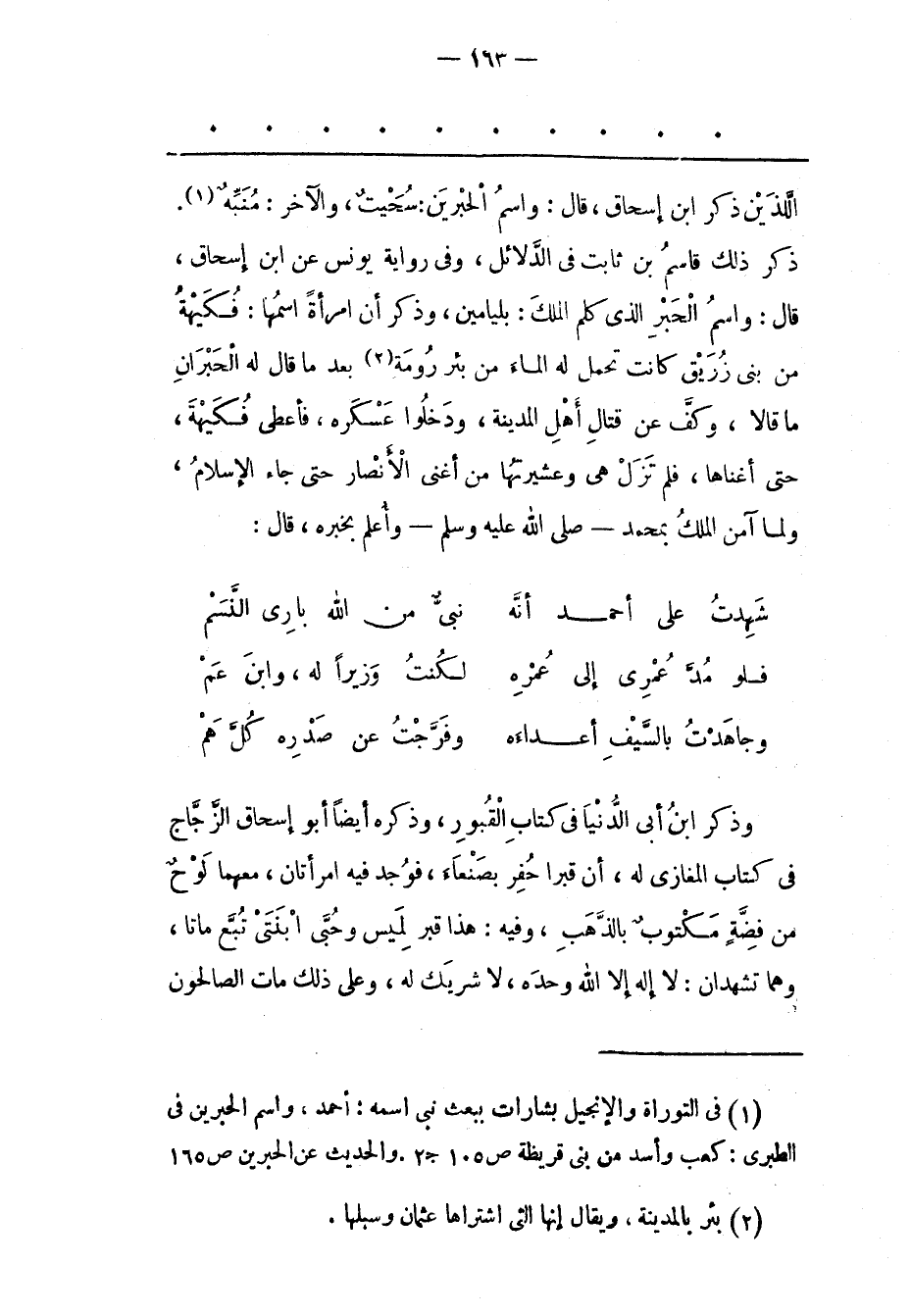 اللّذَيْنِ ذَكَرَ ابْن إسْحَاقَ، قَالَ: وَاسْمُ الْحَبْرَيْنِ: سُحَيْتٌ، وَالْآخَرُ: مُنَبّهٌ «1» .
