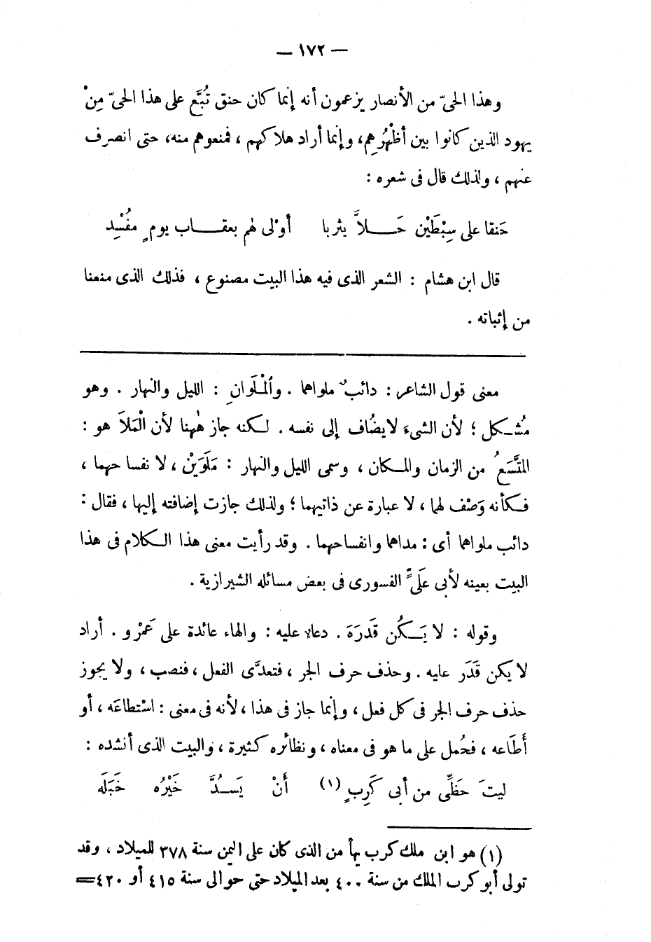 قَالَ ابن هشام: الشعر الذى فيه هَذَا الْبَيْتِ مَصْنُوعٌ، فَذَلِكَ الّذِي مَنَعَنَا مِنْ إثباته.