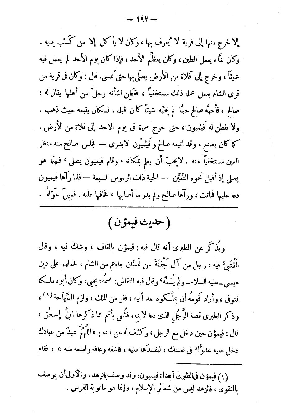 (1) فيمؤن فى الطبرى أيضا: فيميون، وقد وصف بالزهد، والأولى أن يوصف بالتقوى، فالزهد ليس من شعائر الإسلام، وإنما هو مانوية الفرس.