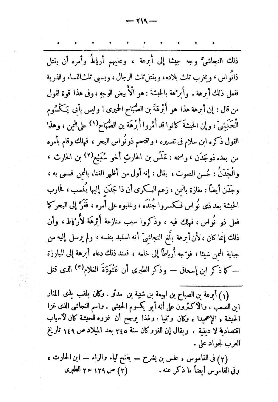 (1) أبرهة بن الصباح بن لهيعة بن شيبة بن مدثر. وكان يلقب بذى المنار ابن الصعب، والأكثرون على أنه أبو يكسوم الحبشى. واسم النجاشى الذى غزا الحبشة «الإعميدا» وكان وثنيا، ولهذا يرجح أن غزوه للحبشة كان لأسباب اقتصادية لا دينية، ويقال إن الغزو كان سنة 345 بعد الميلاد ص 149 تاريخ العرب لجواد على.