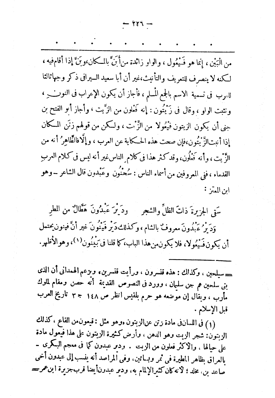 (1) فى اللسان فى مادة زتن عن الزيتون «وهو مثل: قيعون من القاع، كذلك الزيتون: شجر الزيت وهو الدهن، وأرض كثيرة الزيتون على هذا فيعول مادة على حيالها، والأكثر فعلون من الزيت. ودير عبدون كما فى معجم البكرى- بالعراق بظاهر المطيرة فى ثمر وبساتين، وفى المراصد أنه ينسب إلى عبدون أخى صاعد بن مخلد؛ لأنه كان كثير الإلمام به، ودير عبدون أيضا قرب جزيرة ابن عمر-