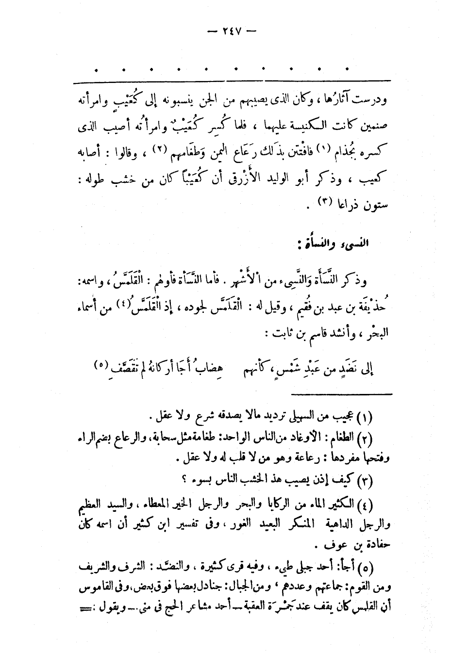 (5) أجأ: أحد جبلى طيئ، وفيه قرى كثيرة، والنضّد: الشرف والشريف ومن القوم: جماعتهم وعددهم، ومن الجبال: جنادل بعضها فوق بعض، وفى القاموس أن القلس كان يقف عند جمرة العقبة- أحد مشاعر الحج فى منى- ويقول: -