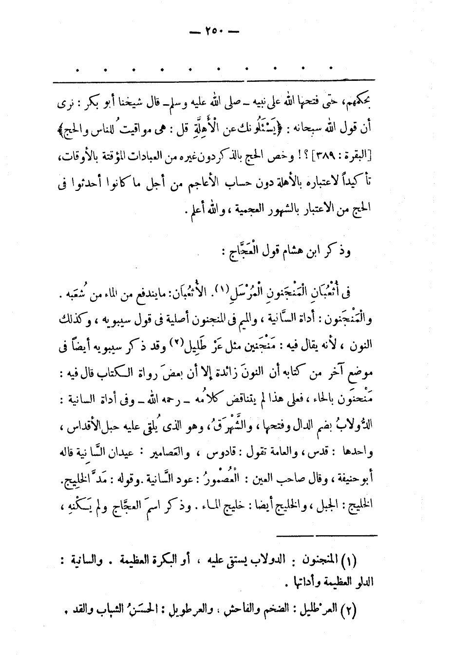 وَذَكَرَ ابْنُ هِشَامٍ قَوْلَ الْعَجّاجِ: