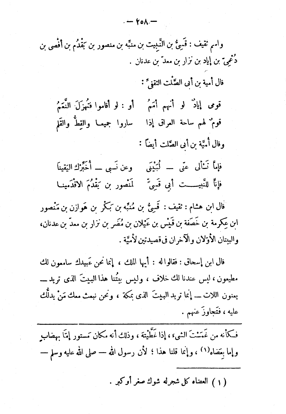قَالَ ابْنُ هِشَامٍ: ثَقِيفٌ: قَسِىّ بْنُ مُنَبّهِ بْنِ بَكْرِ بن هوازن بن منصور ابن عكرمة بن خصفة بن قيس بن عيلان بْنِ مُضَرَ بْنِ نِزَارِ بْنِ مَعَدّ بْنِ عَدْنَانَ، وَالْبَيْتَانِ الْأَوّلَانِ وَالْآخِرَانِ فِي قَصِيدَتَيْنِ لِأُمَيّةِ.
