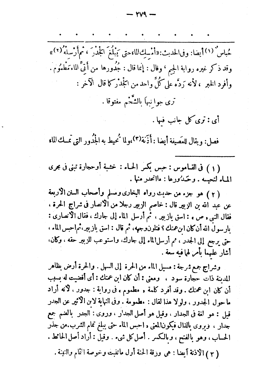 (1) فى القاموس: حبس بكسر الحاء: خشبة أو حجارة تبنى فى مجرى الماء لتحبسه. وحدورها: ما انحدر منها.
