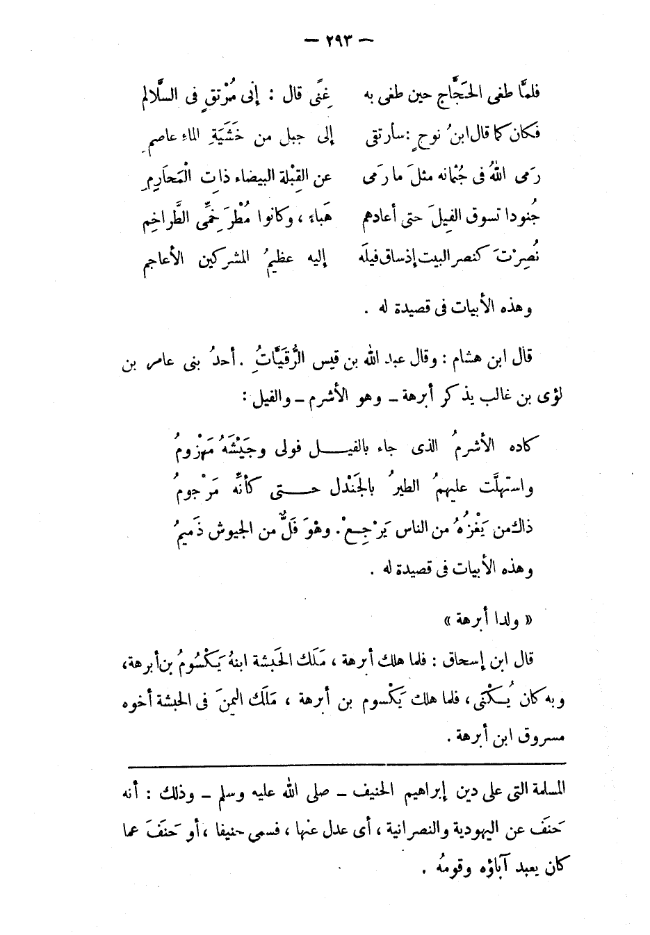 قَالَ ابْنُ هِشَامٍ: وَقَالَ عَبْدُ اللهِ بْنُ قَيْسٍ الرّقَيّاتُ. أَحَدُ بَنِي عَامِرِ بْنِ لُؤَيّ بْنِ غَالِبٍ يَذْكُرُ أَبْرَهَةَ- وَهُوَ الْأَشْرَمُ- وَالْفِيلَ: