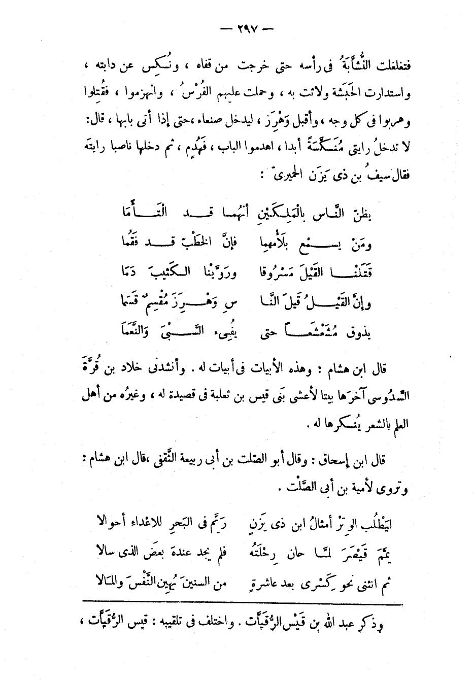 قَالَ ابْنُ هِشَامٍ: وَهَذِهِ الْأَبْيَاتُ فِي أَبْيَاتٍ لَهُ. وَأَنْشَدَنِي خَلّادُ بْنُ قُرّةَ السّدُوسِيّ آخِرَهَا بَيْتًا لِأَعْشَى بَنِي قَيْسِ بْنِ ثَعْلَبَةَ فِي قَصِيدَةٍ لَهُ، وَغَيْرُهُ مِنْ أَهْلِ الْعِلْمِ بِالشّعْرِ يُنْكِرُهَا لَهُ.