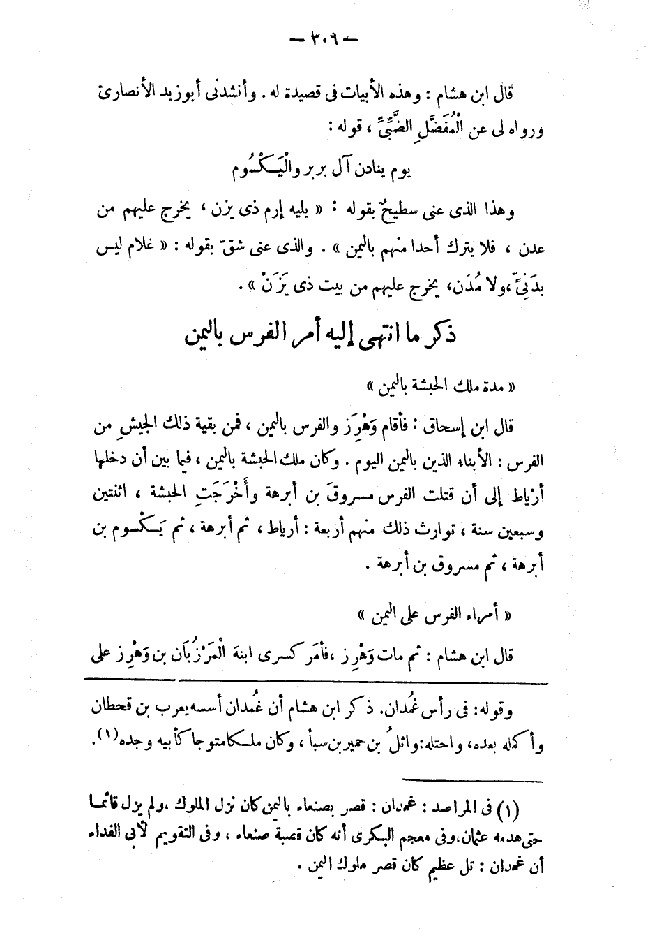 (1) فى المراصد: غمدان: قصر بصنعاء باليمن كان نزل الملوك، ولم يزل قائما حتى هدمه عثمان، وفى معجم البكرى أنه كان قصبة صنعاء، وفى التقويم لأبى الفداء أن غمدان: تل عظيم كان قصر ملوك اليمن.