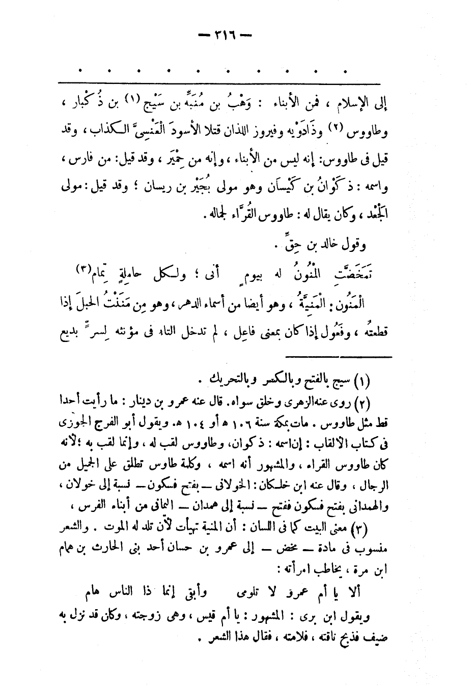 إلَى الْإِسْلَامِ، فَمِنْ الْأَبْنَاءِ: وَهْبُ بْنُ مُنَبّهِ بْنِ سَيْجِ «1» بْنِ ذُكْبَارٍ، وَطَاوُوسٌ «2» وَذَادَوَيْهِ وَفَيْرُوزُ اللّذَانِ قَتَلَا الْأَسْوَدَ الْعَنْسِيّ الْكَذّابَ، وَقَدْ قِيلَ فِي طَاوُوسٍ: إنّهُ لَيْسَ مِنْ الْأَبْنَاءِ، وَإِنّهُ مِنْ حِمْيَرَ، وَقَدْ قِيلَ: مِنْ فَارِسَ، وَاسْمُهُ: ذَكْوَانُ بْنُ كَيْسَانَ وَهُوَ مَوْلَى بُجَيْرِ بْنِ رَيْسَانَ؛ وَقَدْ قِيلَ: مَوْلَى الْجَعْدِ، وَكَانَ يُقَالُ لَهُ: طَاوُوسٌ الْقَرّاءُ لِجَمَالِهِ.