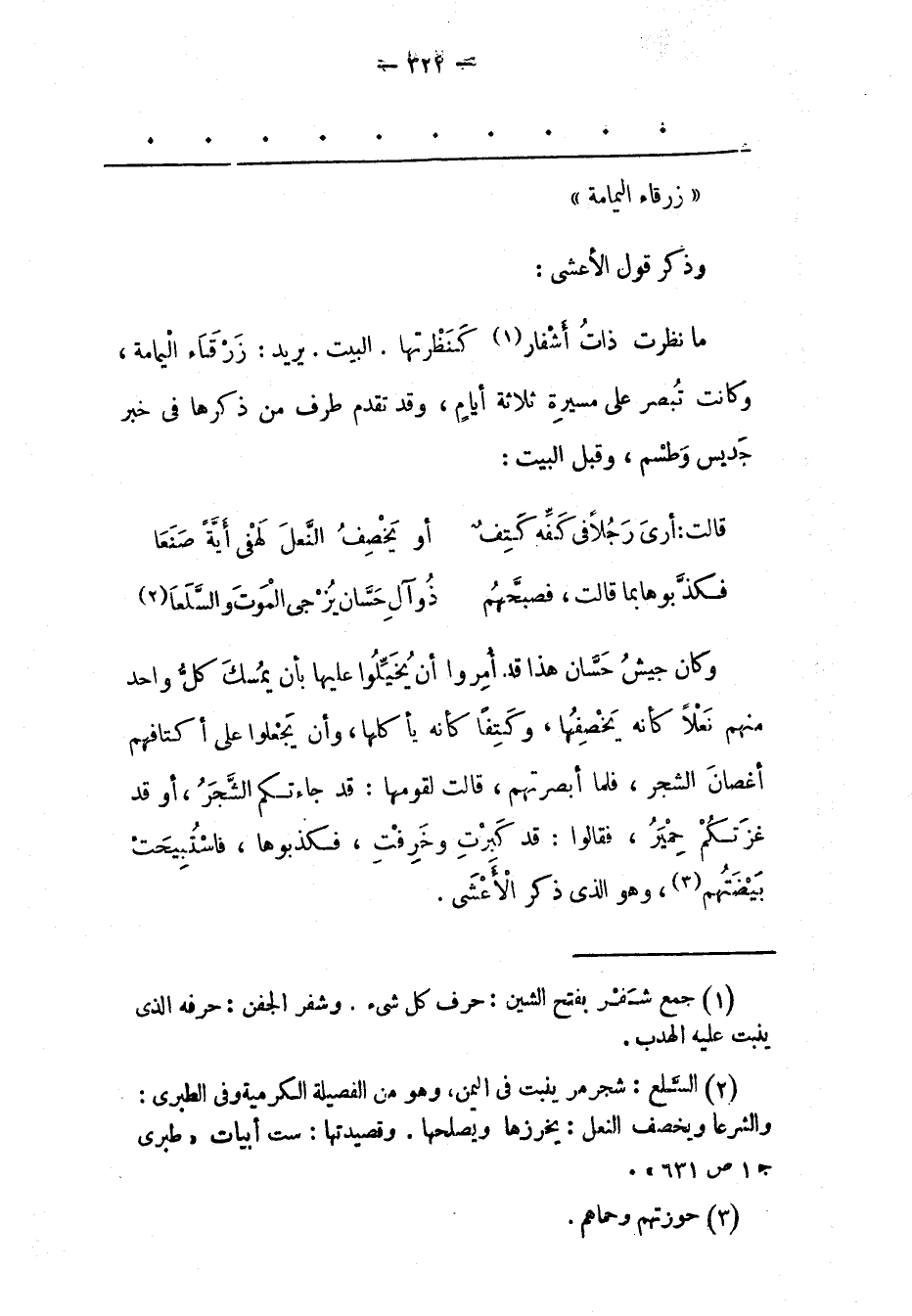 «زَرْقَاءُ الْيَمَامَةِ» وَذَكَرَ قَوْلَ الْأَعْشَى: