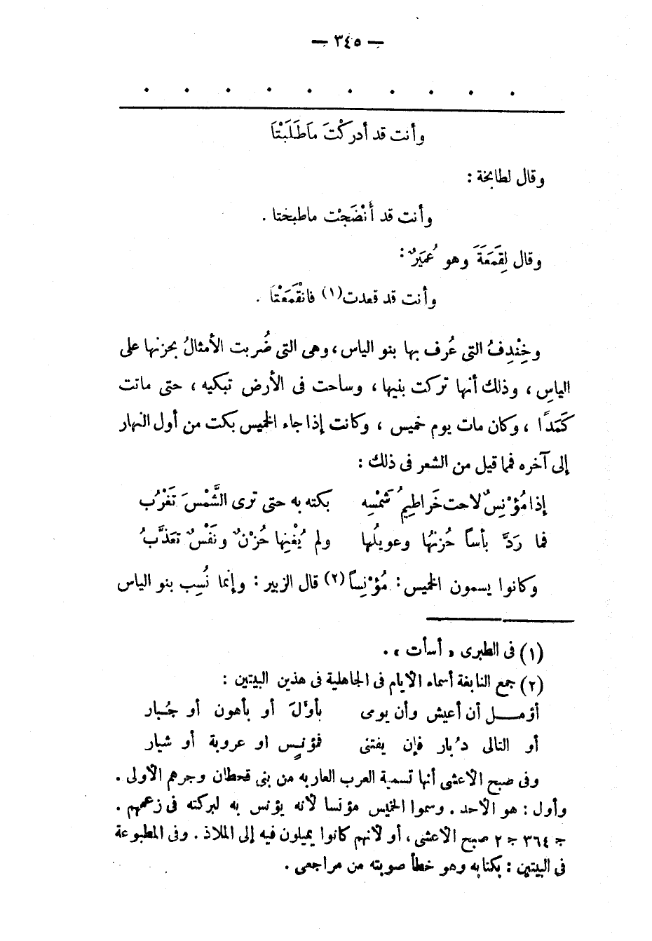 وفى صبح الأعشى أنها تسمية العرب العاربه من بنى قحطان وجرهم الأولى. وأول: هو الأحد. وسموا الخميس مؤنسا لأنه يؤنس به لبركته فى زعمهم. ج 364 ج 2 صبح الأعشى، أو لأنهم كانوا يميلون فيه إلى الملاذ. وفى المطبوعة فى البيتين: بكتابه وهو خطأ صوبته من مراجعى.
