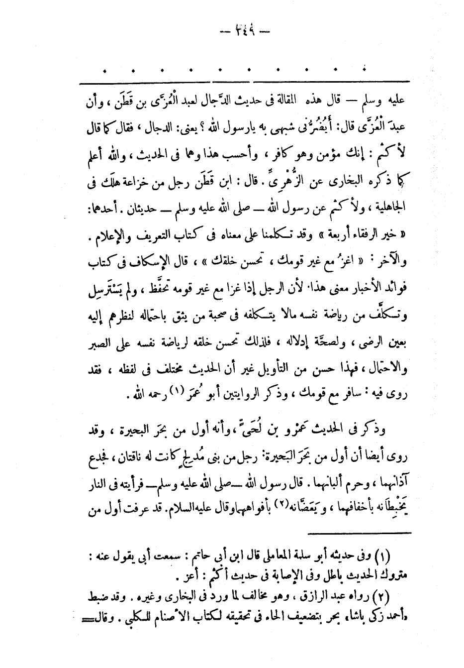 (2) رواه عبد الرازق، وهو مخالف لما ورد فى البخارى وغيره. وقد ضبط «أحمد زكى باشا» بحر بتضعيف الحاء فى تحقيقه لكتاب الأصنام للكلبى. وقال-