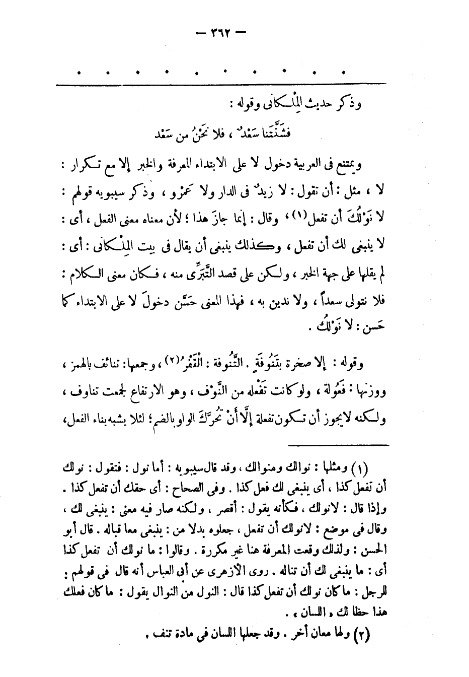 لَا نَوْلُك أَنْ تَفْعَلَ «1» ، وَقَالَ: إنّمَا جَازَ هَذَا؛ لِأَنّ مَعْنَاهُ مَعْنَى الْفِعْلِ، أَيْ: