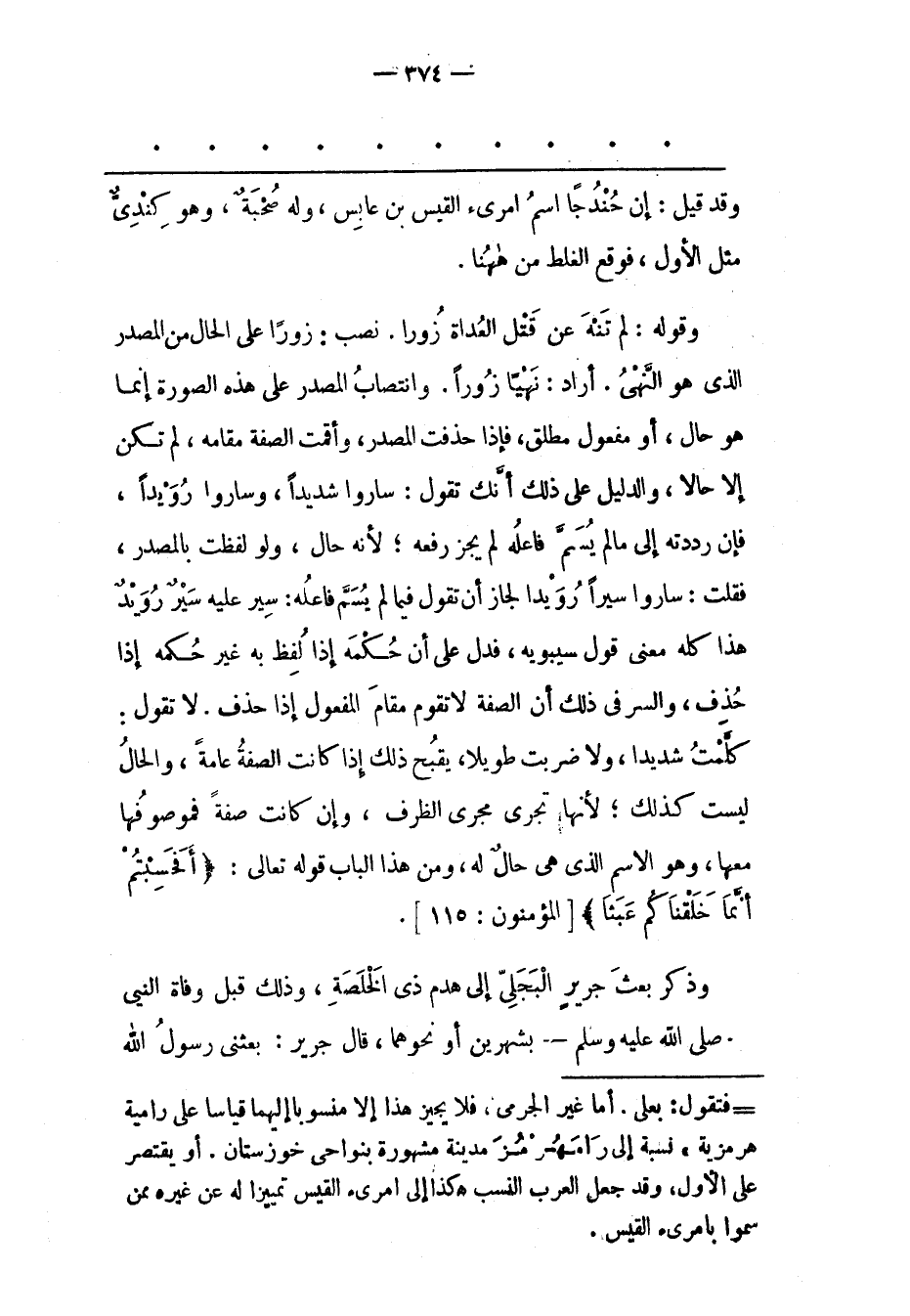 - فتقول: بعلى. أما غير الجرمى، فلا يجيز هذا إلا منسوبا إليهما قياسا على رامية هرمزية» نسبة إلى رامهرمز مدينة مشهورة بنواحى خوزستان. أو يقتصر على الأول، وقد جعل العرب النسب هكذا إلى امرئ القيس تمييزا له عن غيره ممن سموا بامرئ القيس.
