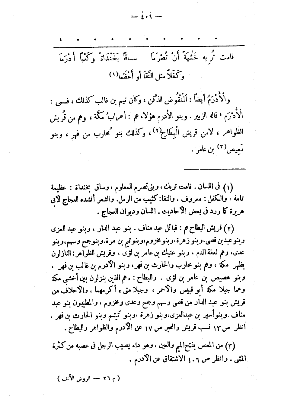 الْأَدْرَمَ، قَالَهُ الزّبَيْرُ. وَبَنُو الْأَدْرَمِ هَؤُلَاءِ هُمْ: أَعْرَابُ مَكّةَ، وَهُمْ مِنْ قريش الظواهر، لامن قُرَيْشٍ الْبِطَاحِ «2» ، وَكَذَلِكَ بَنُو مُحَارِبٍ مِنْ فِهْرٍ، وبنو معيص «3» بن عامر.