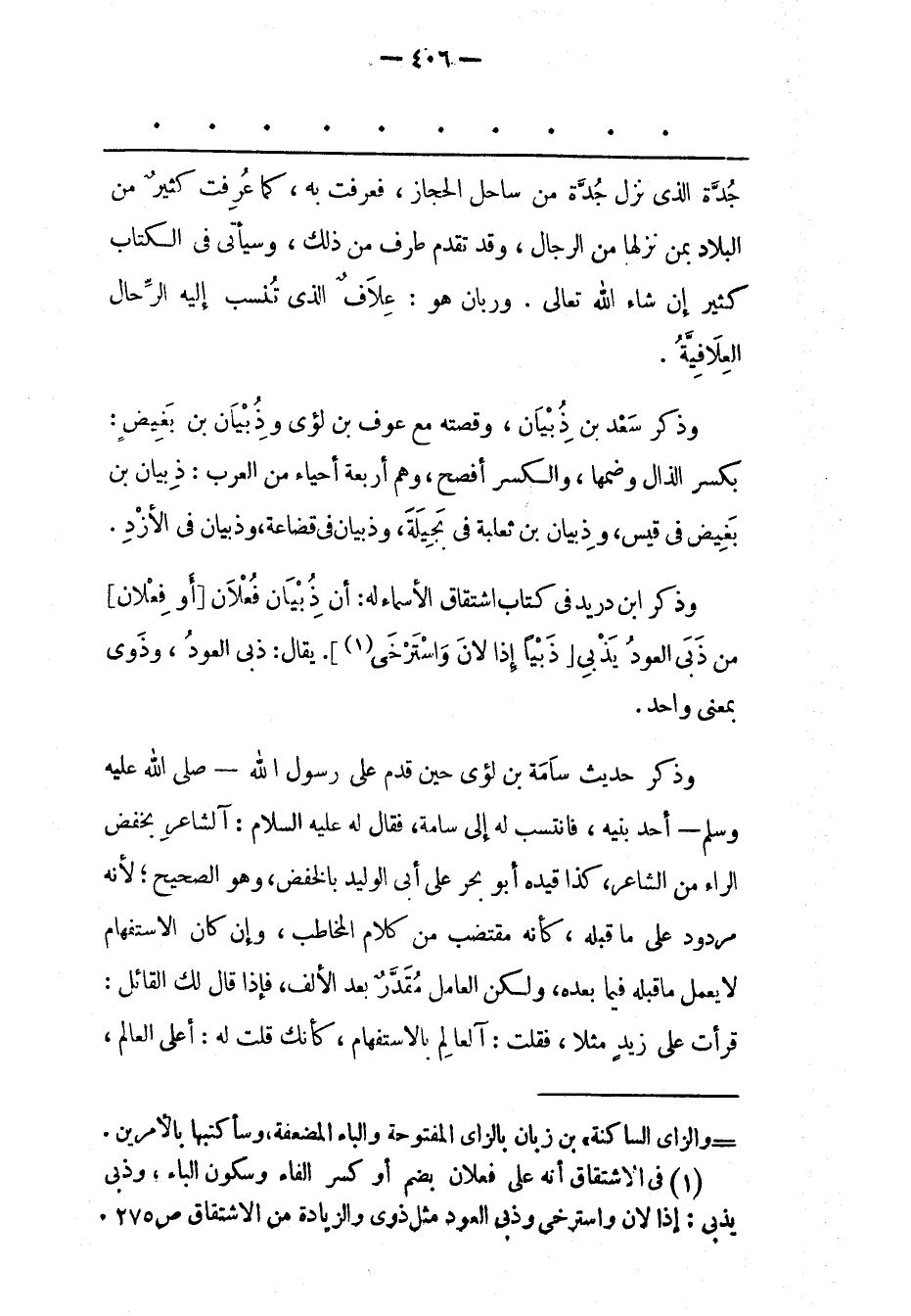 جُدّةَ الّذِي نَزَلَ جُدّةَ مِنْ سَاحِلِ الْحِجَازِ، فَعُرِفَتْ بِهِ، كَمَا عُرِفَتْ كَثِيرٌ مِنْ الْبِلَادِ بِمَنْ نَزَلَهَا مِنْ الرّجَالِ، وَقَدْ تَقَدّمَ طَرَفٌ مِنْ ذَلِكَ، وَسَيَأْتِي فِي الْكِتَابِ كَثِيرٌ إنْ شَاءَ اللهُ تَعَالَى. وَرَبّانُ هُوَ: عِلَافٌ الّذِي تُنْسَبُ إلَيْهِ الرّحَالُ الْعِلَافِيّةُ.