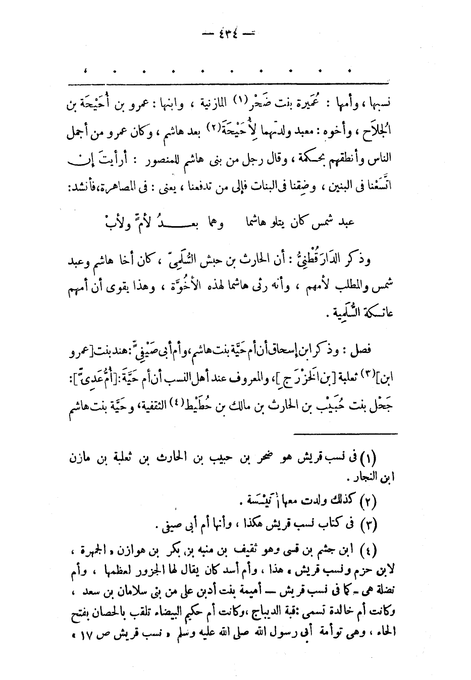 (4) ابن جشم بن قسى وهو ثقيف بن منبه بن بكر بن هوازن «الجمهرة، لابن حزم ونسب قريش» هذا، وأم أسد كان يقال لها الجزور لعظمها، وأم نضلة هى- كما فى نسب قريش- أميمة بنت أد بن على من بنى سلامان بن سعد، وكانت أم خالدة تسمى: قبة الديباج، وكانت أم حكيم البيضاء تلقب بالحصان بفتح الحاء، وهى توأمة أَبِي رَسُولِ اللهِ صَلّى اللهُ عَلَيْهِ وَسَلّمَ «نسب قريش ص 17»