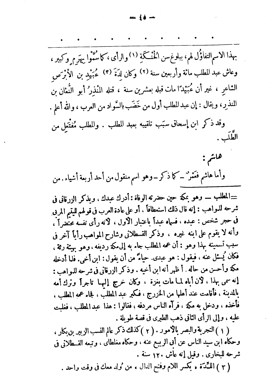 بِهَذَا الِاسْمِ التّفَاؤُلُ لَهُمْ، بِبُلُوغِ سِنّ الْحُنْكَةِ «1» وَالرّأْيِ، كَمَا سُمّوا بِهَرِمِ وَكَبِيرٍ، وَعَاشَ عَبْدُ الْمُطّلِبِ مِائَةً وَأَرْبَعِينَ سَنَةً «2» وَكَانَ لِدَةَ «3» عُبَيْدِ بْنِ الْأَبْرَصِ الشّاعِرِ، غَيْرَ أَنّ عُبَيْدًا مَاتَ قبله بعشرين سنة، قتله المنذر أبو النّعان بْنُ الْمُنْذِرِ، وَيُقَالُ: إنّ عَبْدَ الْمُطّلِبِ أَوّلُ مَنْ خَضّبَ بِالسّوَادِ مِنْ الْعَرَبِ، وَاَللهُ أَعْلَمُ.