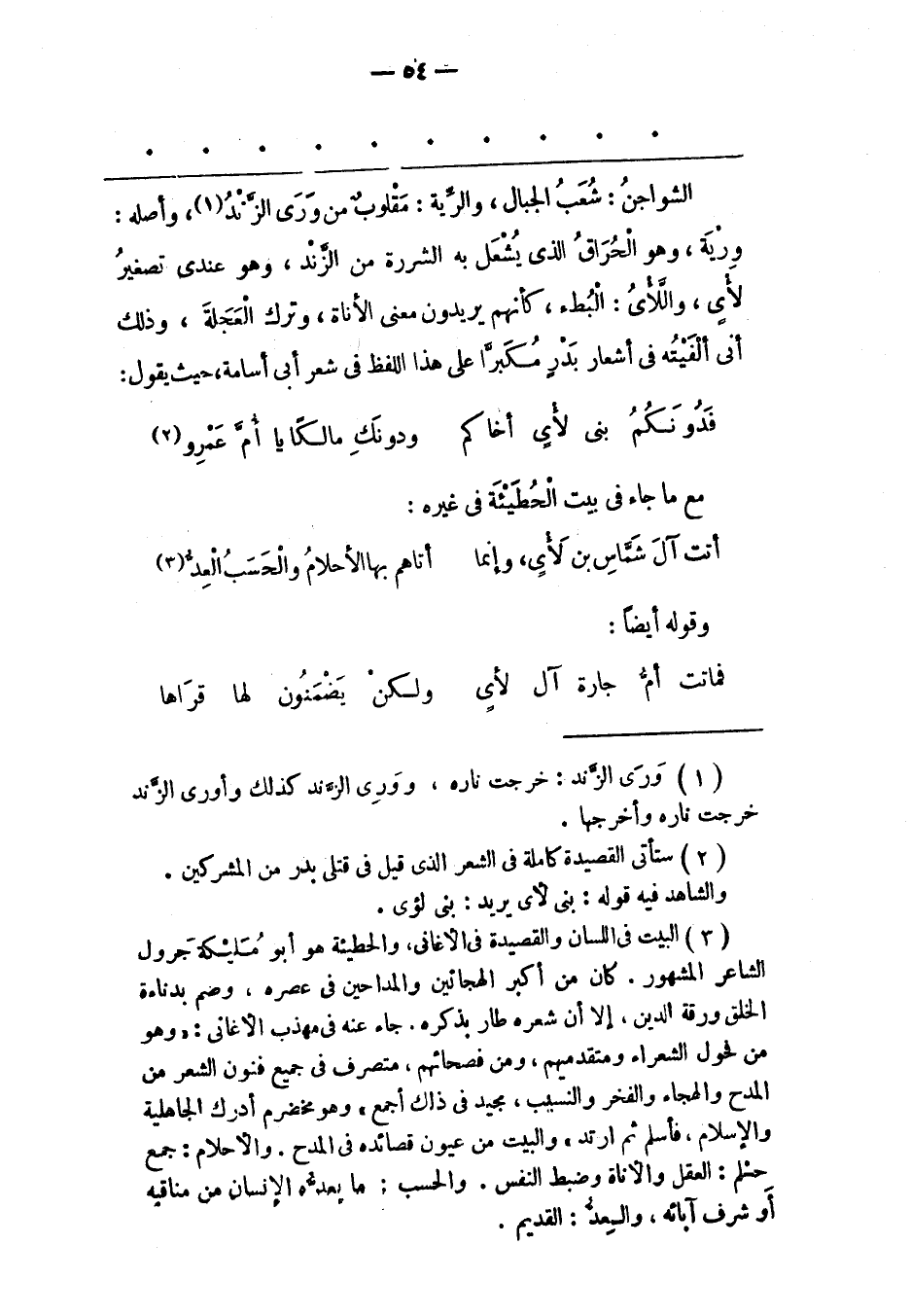 (3) البيت فى اللسان والقصيدة فى الأغانى، والحطيئة هو أبو مليكة جرول الشاعر المشهور. كان من أكبر الهجائين والمداحين فى عصره، وصم بدناءة الخلق ورقة الدين، إلا أن شعره طار بذكره. جاء عنه فى مهذب الأغانى: «وهو من فحول الشعراء ومتقدميهم، ومن فصحائهم، متصرف فى جميع فنون الشعر من المدح والهجاء والفخر والنسيب، مجيد فى ذلك أجمع» وهو مخضرم أدرك الجاهلية والإسلام، فأسلم ثم ارتد» والبيت من عيون قصائده فى المدح. والأحلام: جمع حلم: العقل والأناة وضبط النفس. والحسب: ما يعدّه الإنسان من مناقبه أو شرف آبائه، والعدّ: القديم