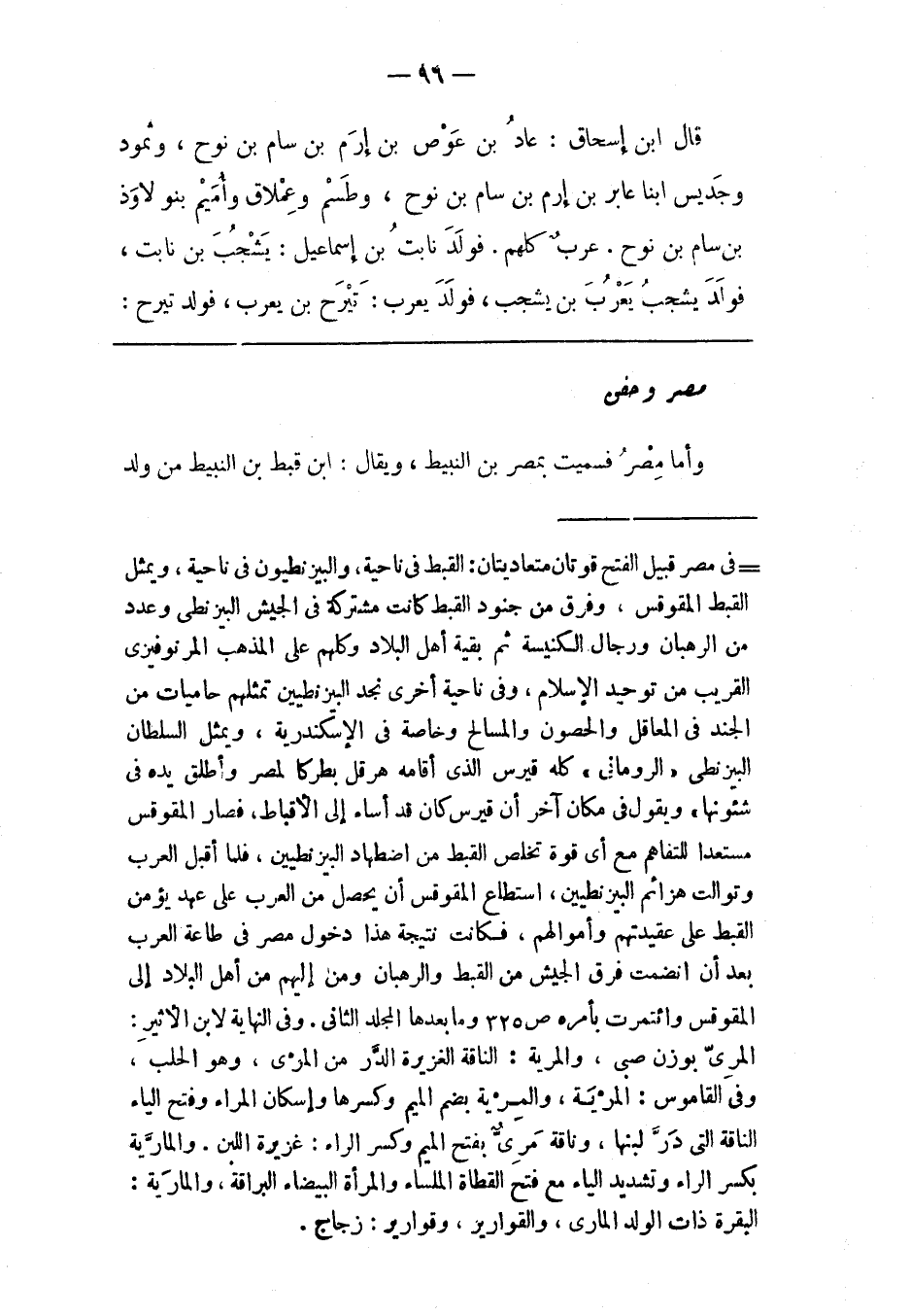 مِصْرُ وَحَفّنِ وَأَمّا مِصْرُ فَسُمّيَتْ بِمِصْرِ بْنِ النّبَيْطِ، وَيُقَالُ: ابْنُ قِبْطِ بْنُ النّبَيْطِ مِنْ ولد
