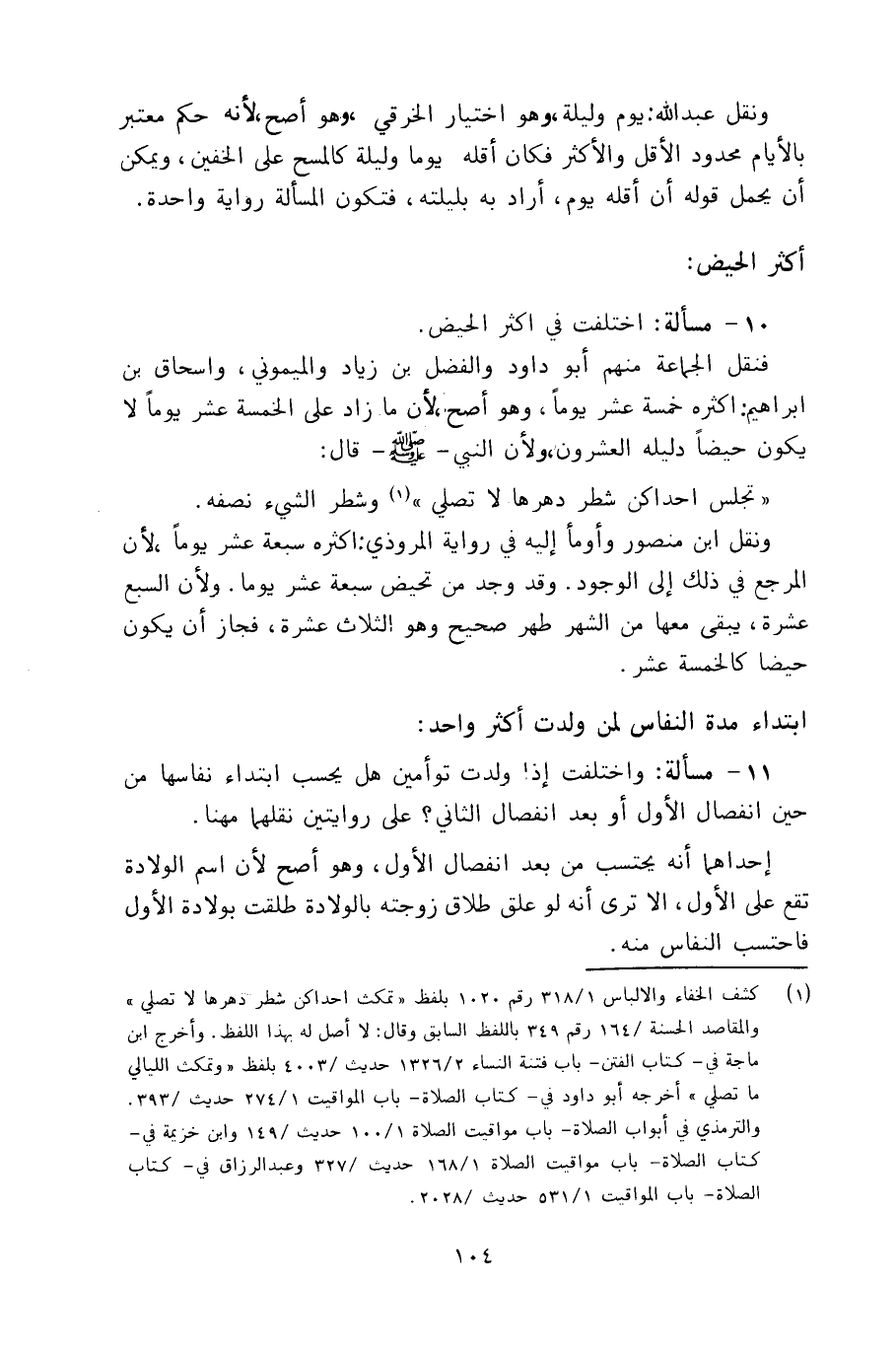 ١٠ - مسألة: اختلفت في أكثر الحيض.