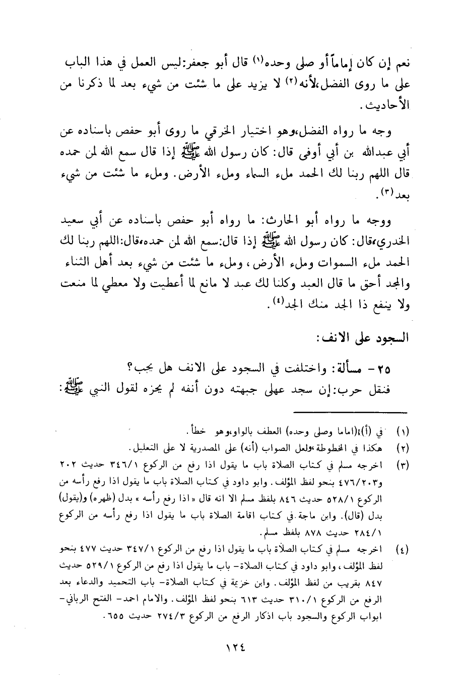 ووجه ما رواه أبو الحارث: ما رواه أبو حفص بإسناده عن أبي سعيد الخدري، قال: كان رسول الله إذا قال: سمع الله لمن حمده، قال: اللهم ربنا لك الحمد ملء السموات وملء الأرض، وملء ما شئت من شيء بعد أهل الثناء والمجد أحق ما قال العبد وكلنا عبد لا مانع لما أعطيت ولا معطي لما منعت ولا ينفع ذا الجد منك الجد.