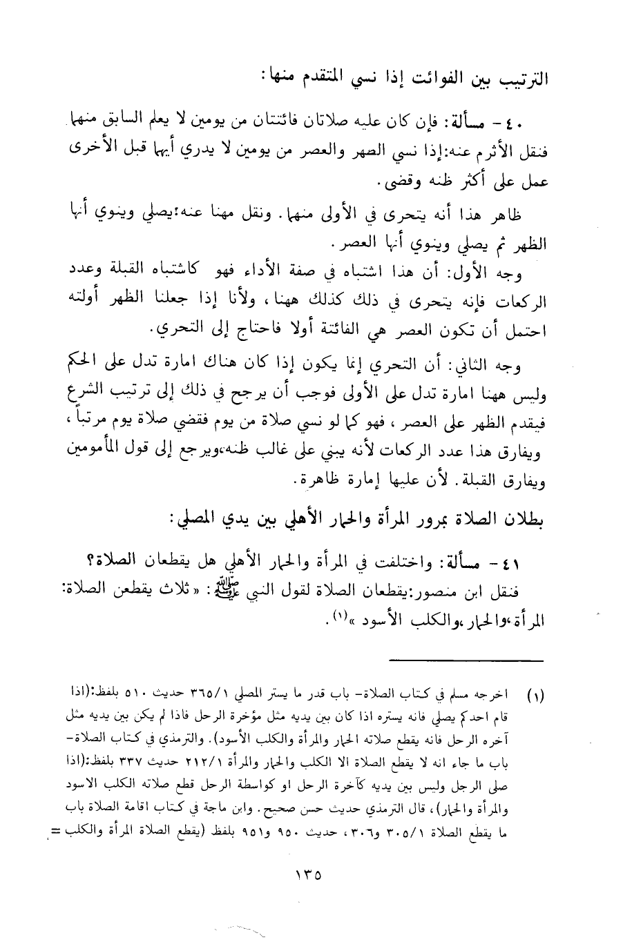 مسائل فيما يبطل الصلاة أو يكره فيها