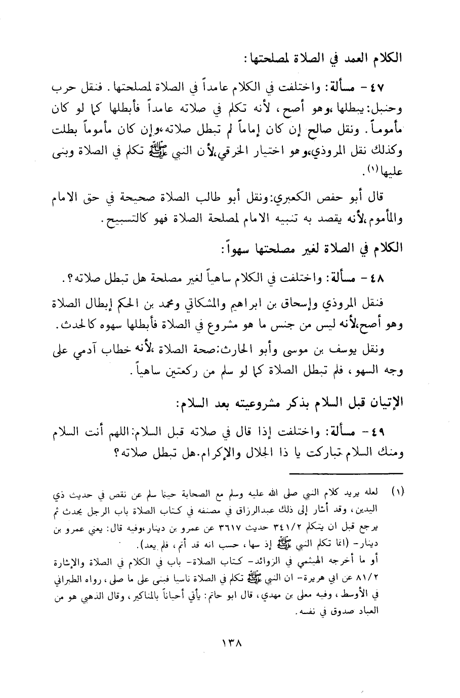 ٤٨ - مسألة: واختلفت في الكلام ساهياً لغير مصلحة هل تبطل صلاته؟