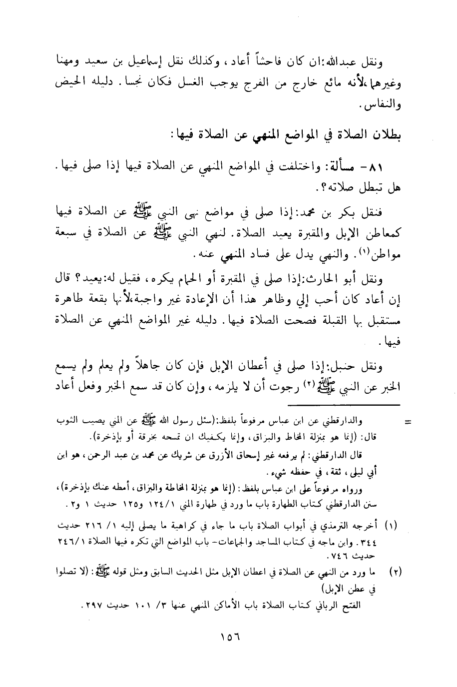 ٨١ - مسألة: واختلفت في المواضع المنهي عن الصلاة فيها إذا صلى فيها. هل تبطل صلاته؟