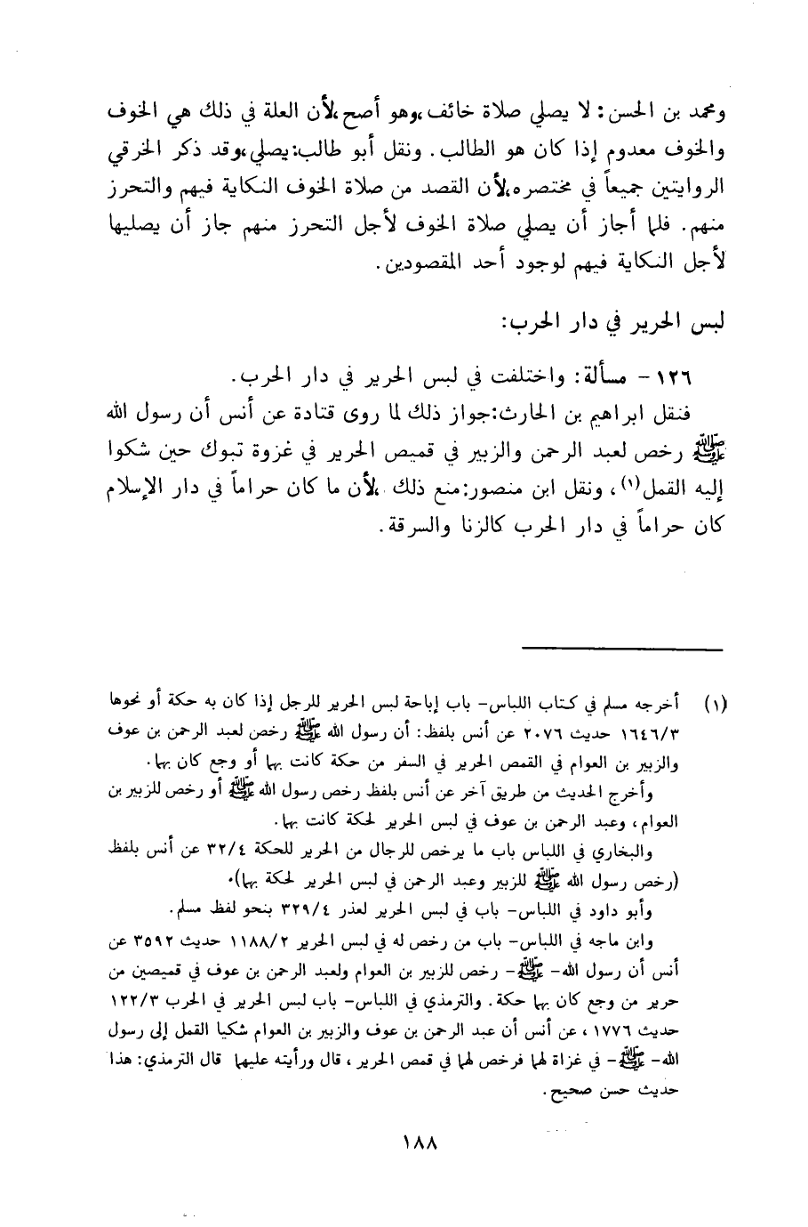 ١٢٦ - مسألة: واختلفت في لبس الحرير في دار الحرب.