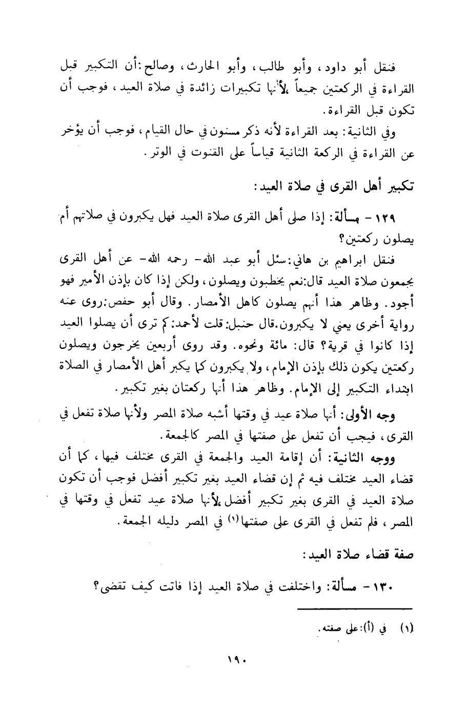 ١٢٩ - مسألة: إذا صلى أهل القرى صلاة العيد فهل يكبرون في صلاتهم أم يصلون ركعتين؟
