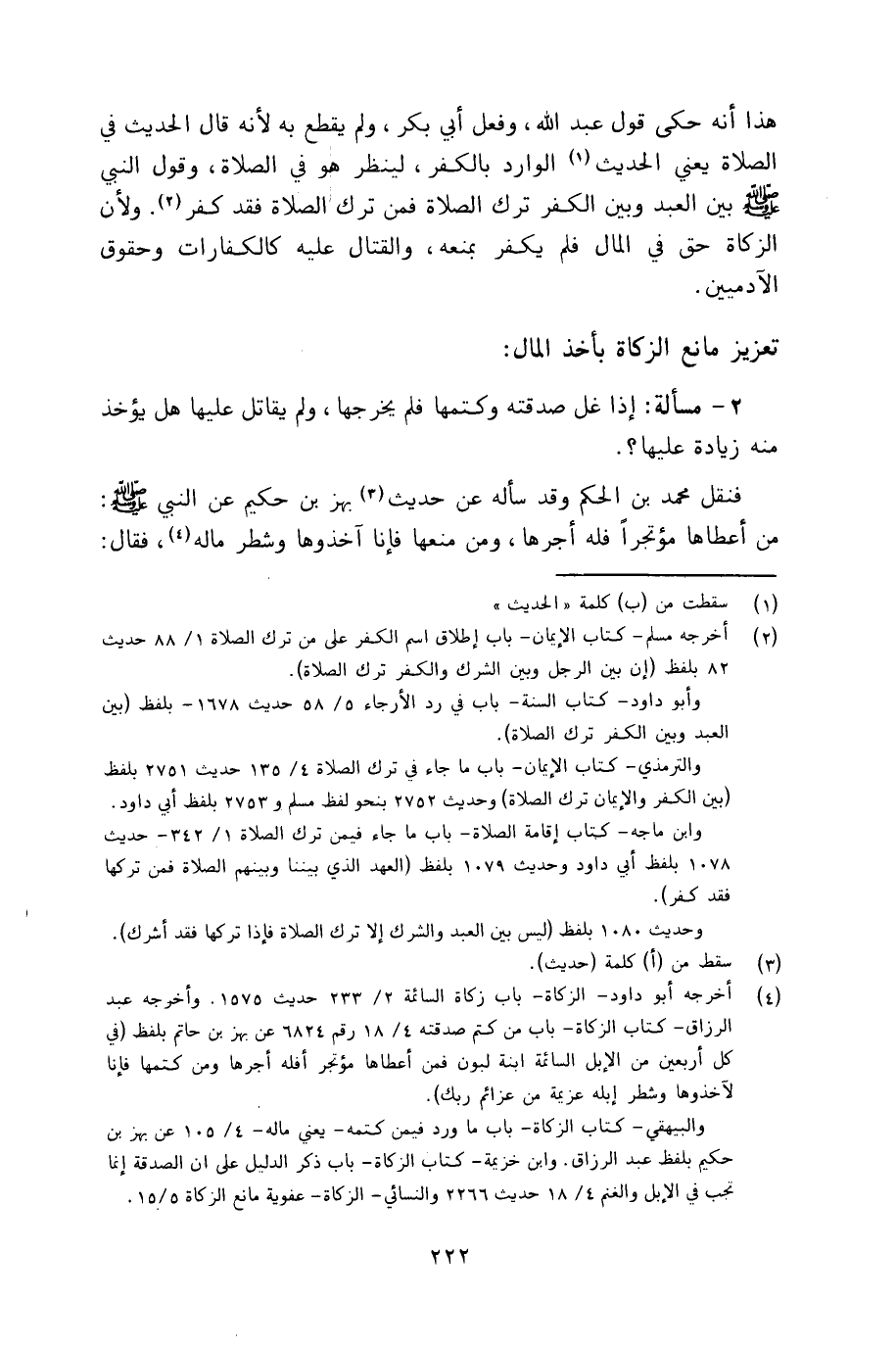 فنقل محمد بن الحكم وقد سأله عن حديث بهز بن حكيم عن النبي: من أعطاها مؤتجراً فله أجرها، ومن منعها فإنا آخذوها وشطر ماله، فقال: