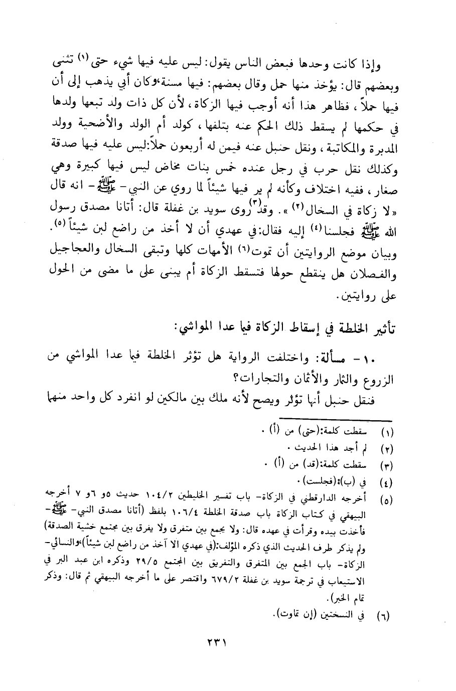 ١٠ - مسألة: واختلفت الرواية هل تؤثر الخلطة فيما عدا المواشي من الزروع والثمار والأثمان والتجارات؟