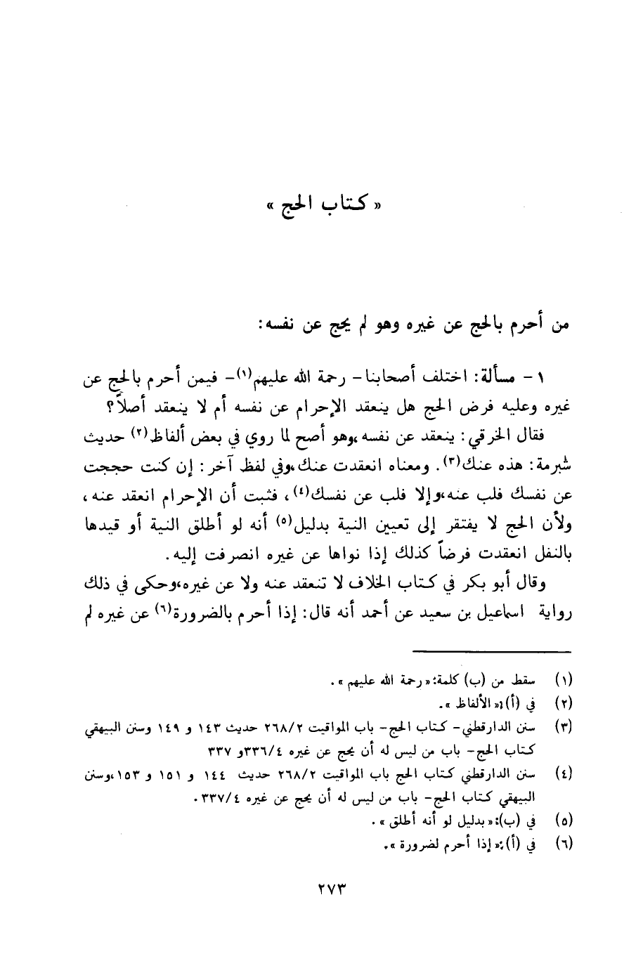 ١ - مسألة اختلف أصحابنا ـ رحمة الله عليهم ـ فيمن أحرم بالحج عن غيره وعليه وفرض الحج هل ينعقد الإحرام عن نفسه أم لا ينعقد أصلاً؟