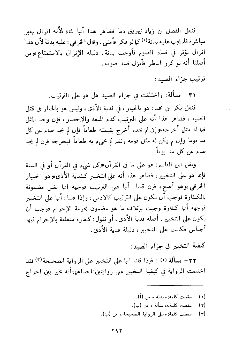 ٣١ - مسألة: واختلفت في جزاء الصيد هل هو على الترتيب.