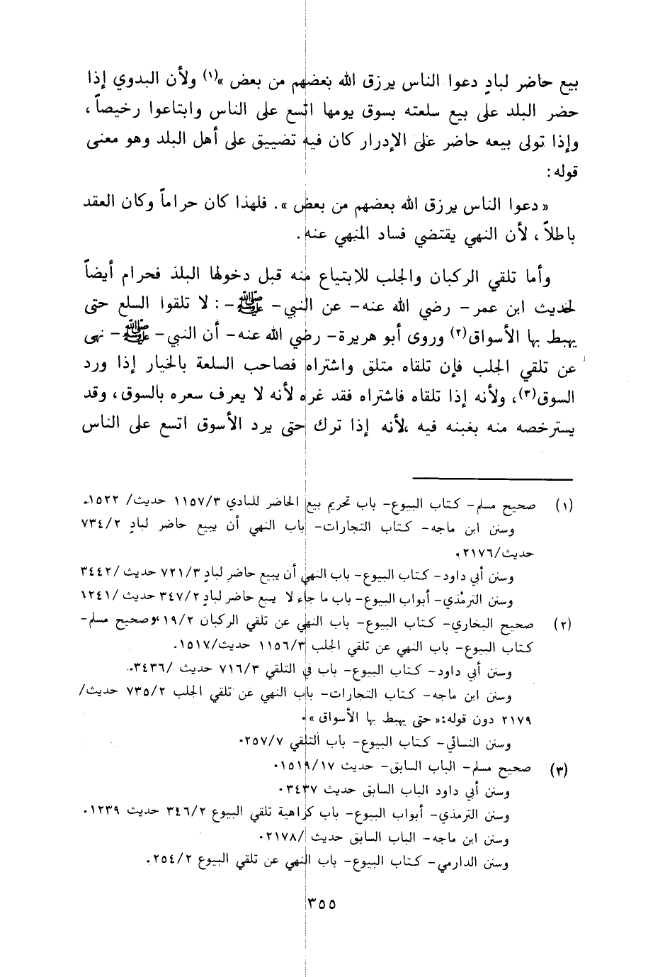بيع حاضر لباد دعوا الناس يرزق الله بعضهم من بعض ولأن البدوي إذا حضر البلد على بيع سلعته بسوق يومها اتسع على الناس وابتاعوا رخيصاً، وإذا تولى بيعه حاضر على الإدرار كان فيه تضييق على أهل البلد وهو معنى قوله: