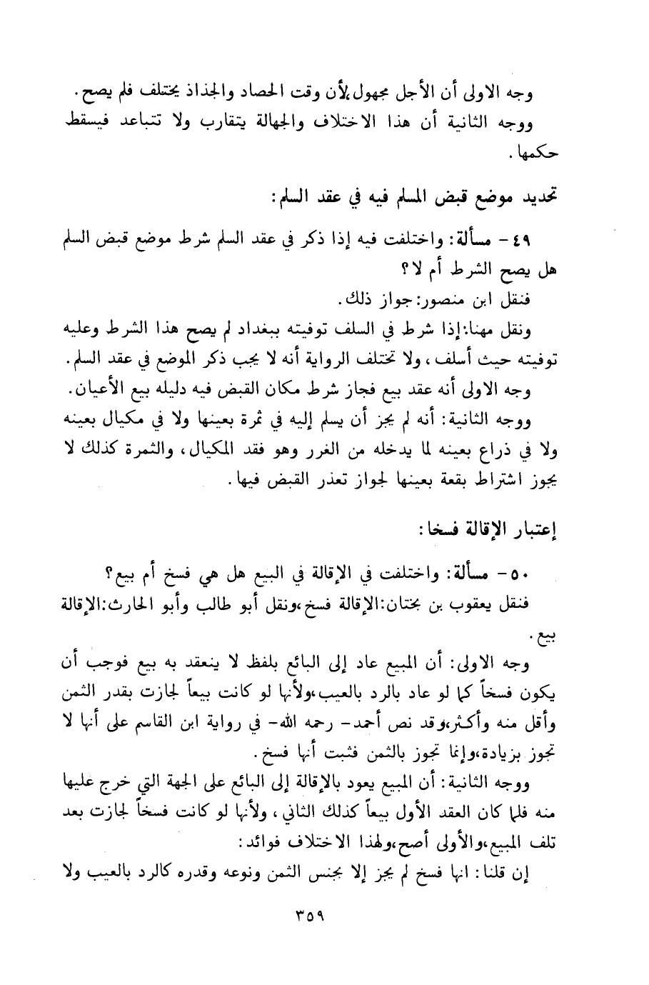 ٥٠ - مسألة: واختلفت في الإقالة في البيع هل هي فسخ أم بيع؟