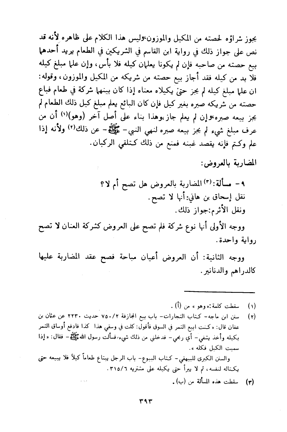 ٩ - مسألة: المضاربة بالعروض هل تصح أم لا؟