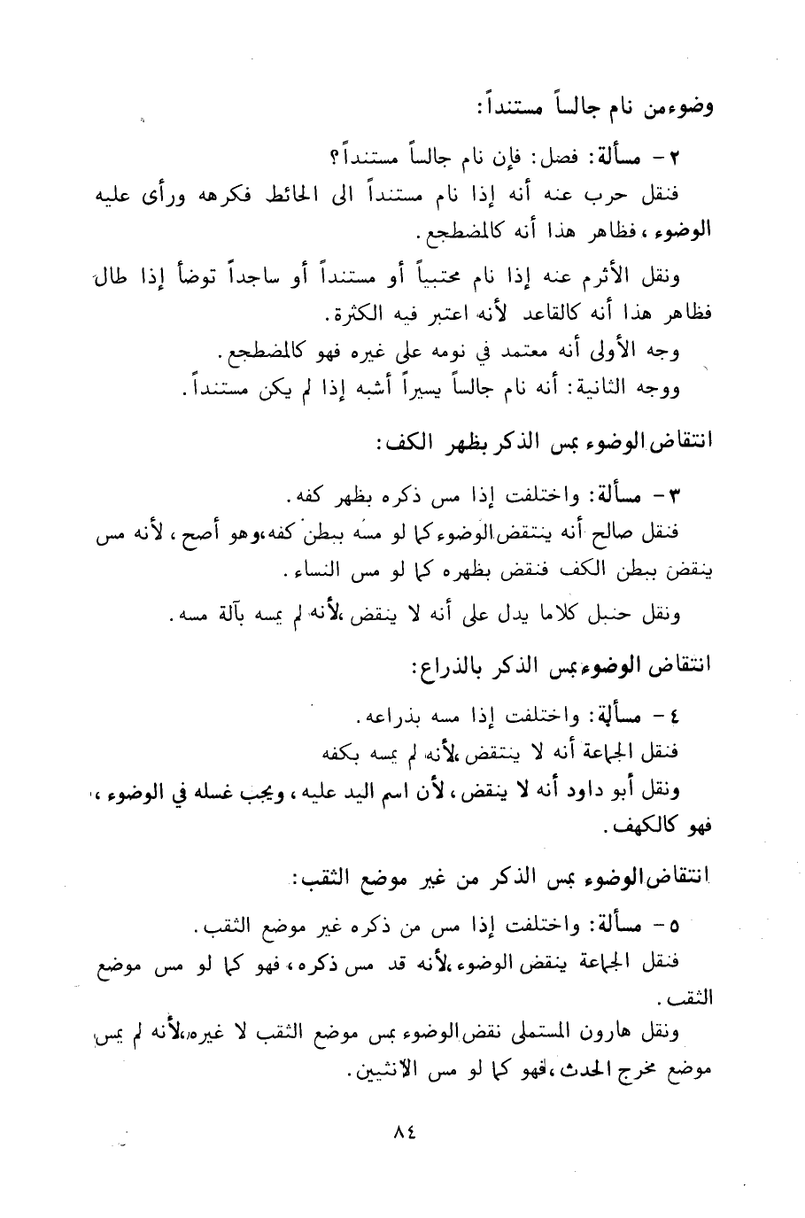 ٣ - مسألة: واختلفت إذا مس ذكره بظهر كفه.