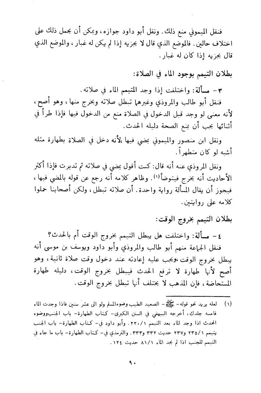 ٣ - مسألة: واختلفت إذا وجد المتيمم الماء في صلاته.