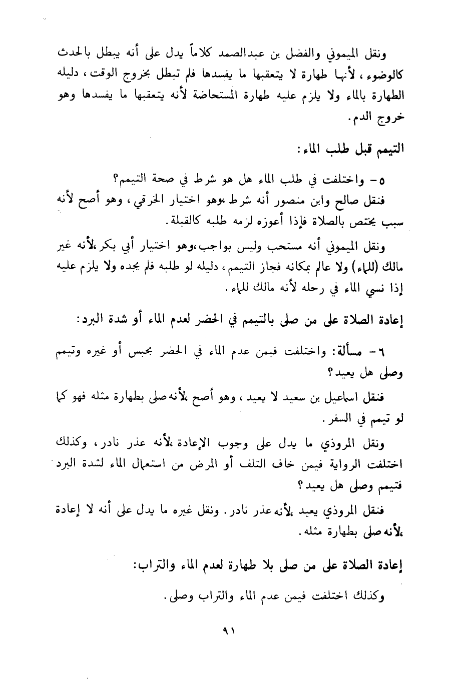ونقل الميموني والفضل بن عبد الصمد كلاماً يدل على أنه يبطل بالحدث كالوضوء، لأنها طهارة لا يتعقبها ما يفسدها فلم تبطل بخروج الوقت، دليله الطهارة بالماء ولا يلزم عليه طهارة المستحاضة لأنه يتعقبها ما يفسدها وهو خروج الدم.