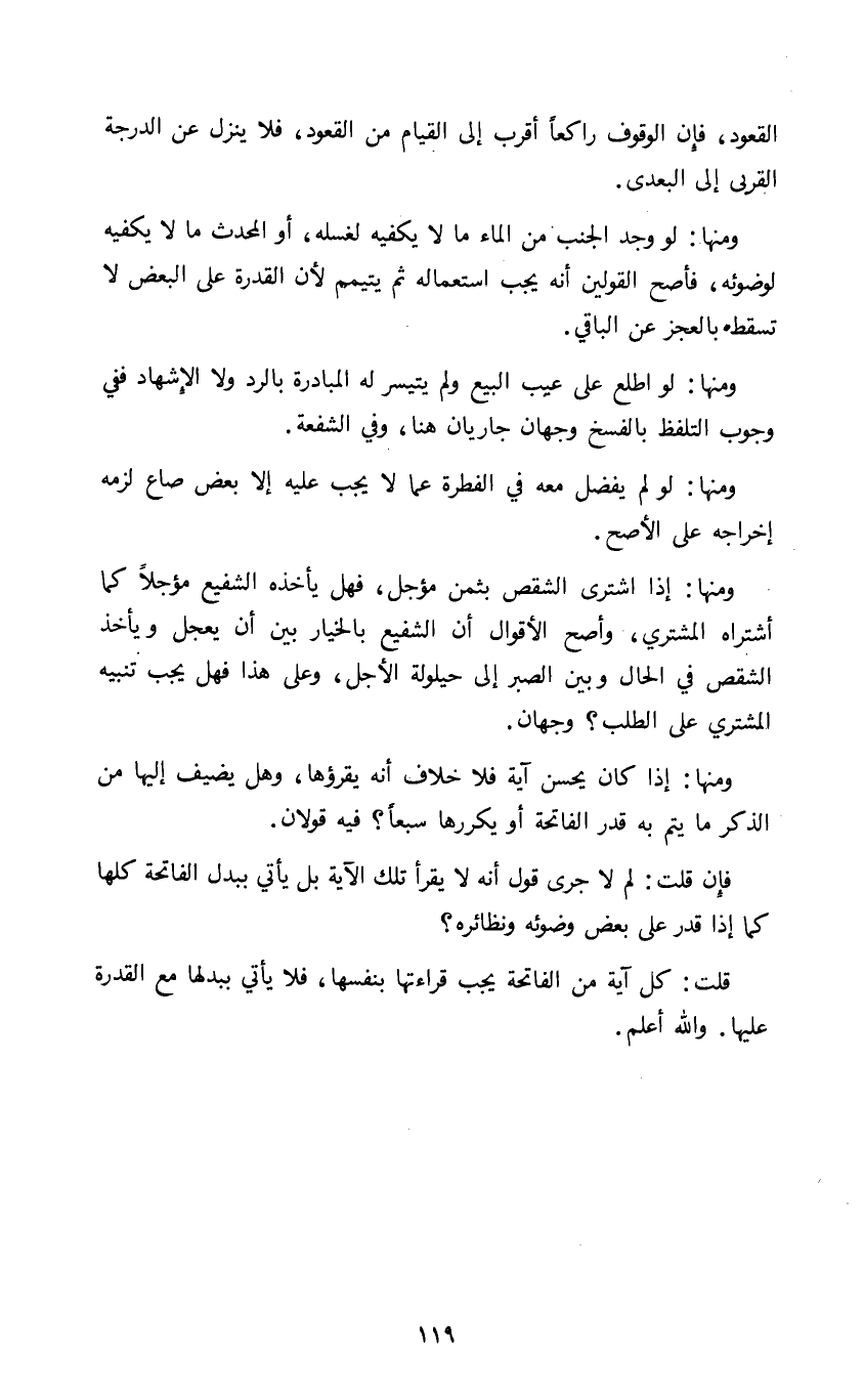 فإن قلت: لم لا جرى قول أنه لا يقرأ تلك الآية بل يأتي ببدل الفاتحة كلها كما إذا قدر على بعض وضوئه ونظائره؟