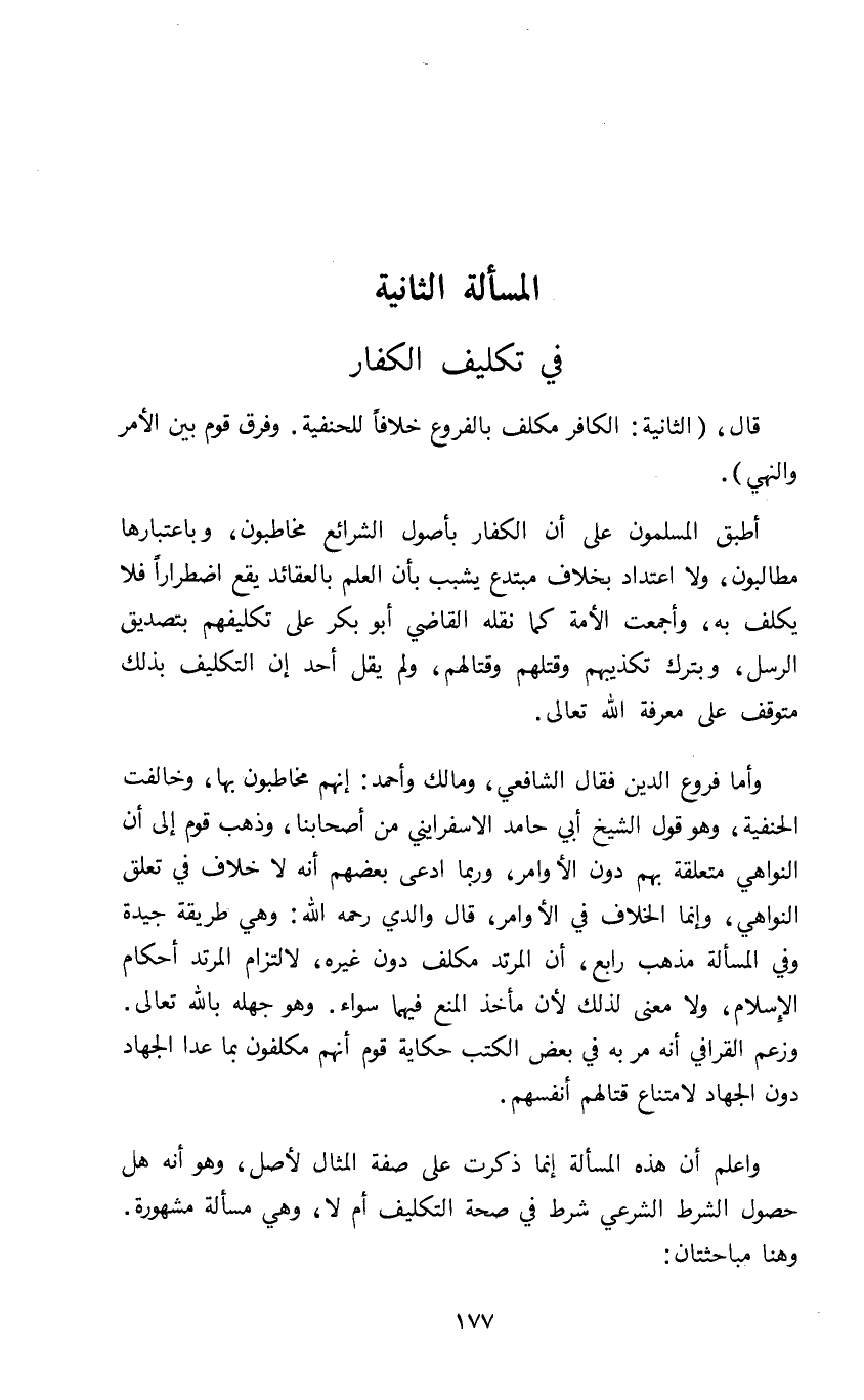 المسألة الثانية في تكليف الكفار