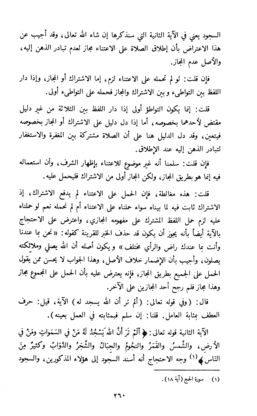 السجود يعني في الآية الثانية التي سنذكرها إن شاء الله تعالى وقد أجيب عن هذا الاعتراض بأن إطلاق الصلاة على الاعتناء مجاز لعدم تبادر الذهن إليه والأصل عدم المجاز.