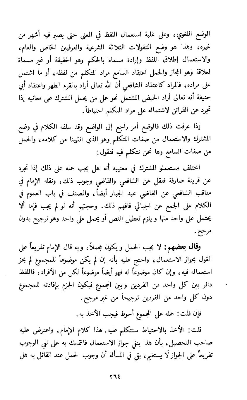 قلت الأخذ بالاحتياط سنتكلم عليه هذا كلام الإمام واعترض عليه صاحب التحصيل بأن هذا ينفي جواز الاستعمال فالتمسك به على نفي الوجوب تفريعا على الجواز لا يستقيم بقي في المسألة أن وجوب الحمل عند القائل به هل