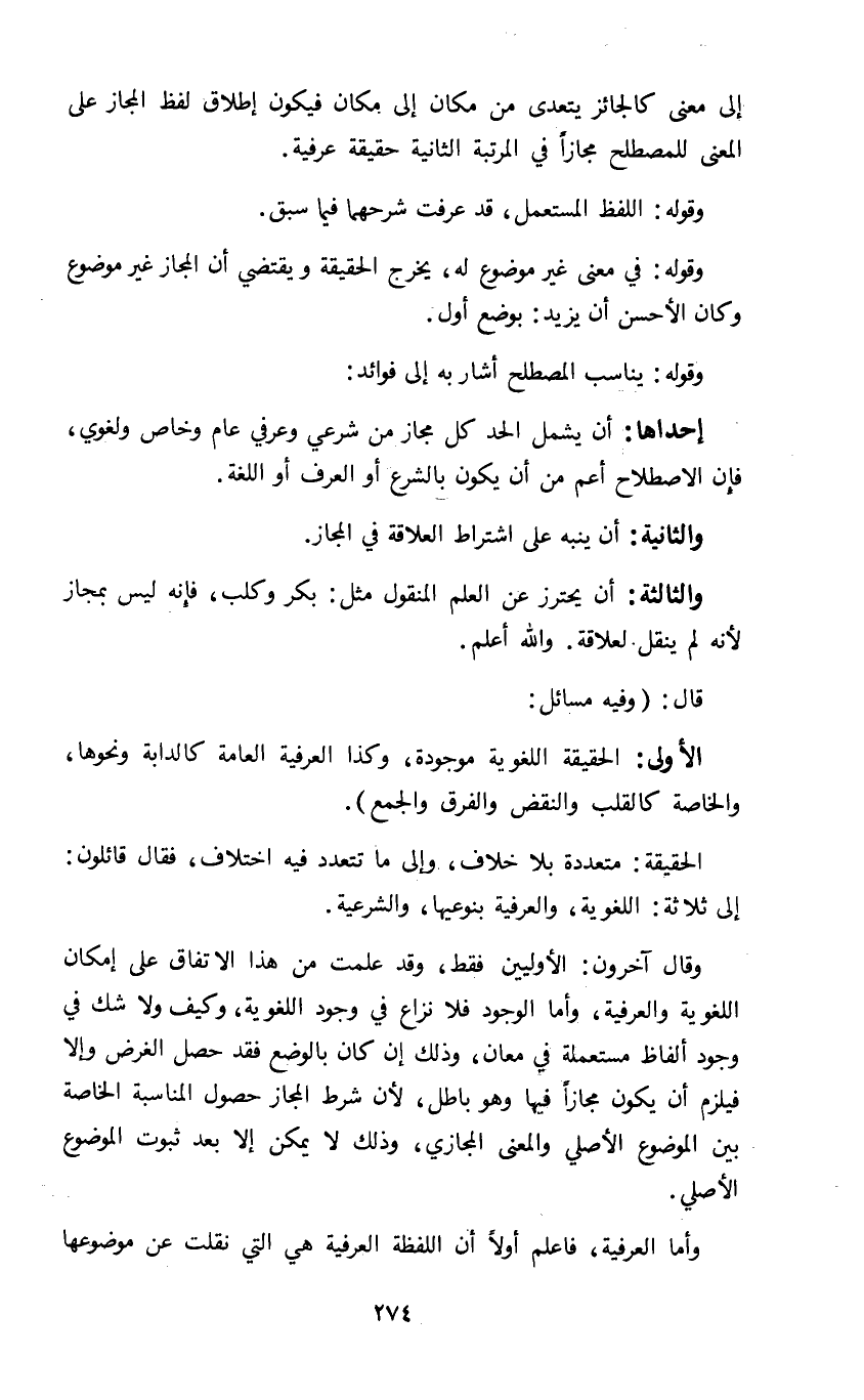 إحداها: أن يشمل الحد كل مجاز من شرعي وعرفي عام وخاص ولغوي فإن الاصطلاح أعم من أن يكون بالشرع أو العرف أو اللغة.