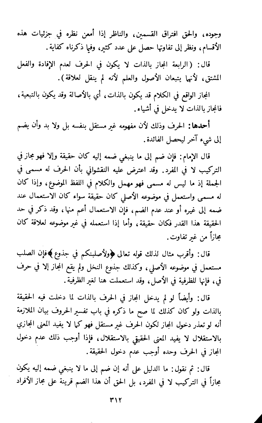 المسألة الرابعة: المجاز بالذات لايكون في الحروف