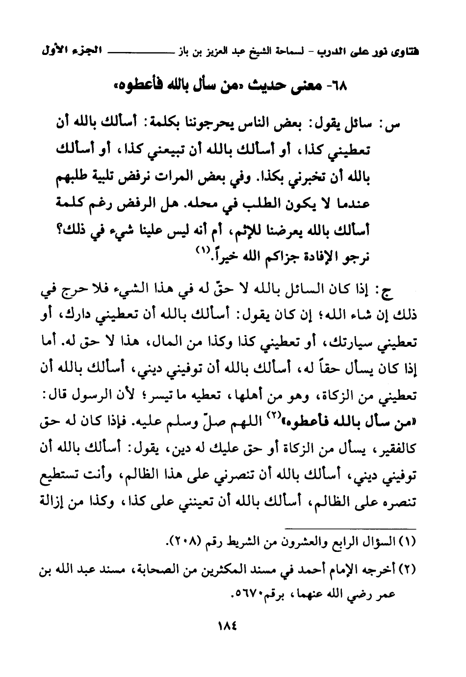 68 - معنى حديث " من سأل بالله فأعطوه "