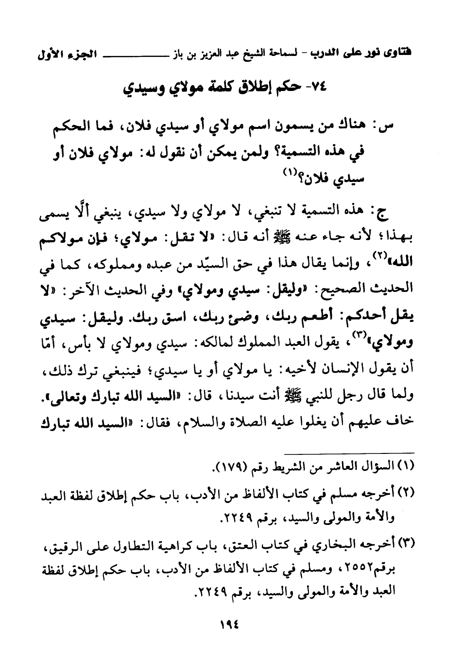 74 - حكم إطلاق كلمة مولاي وسيدي