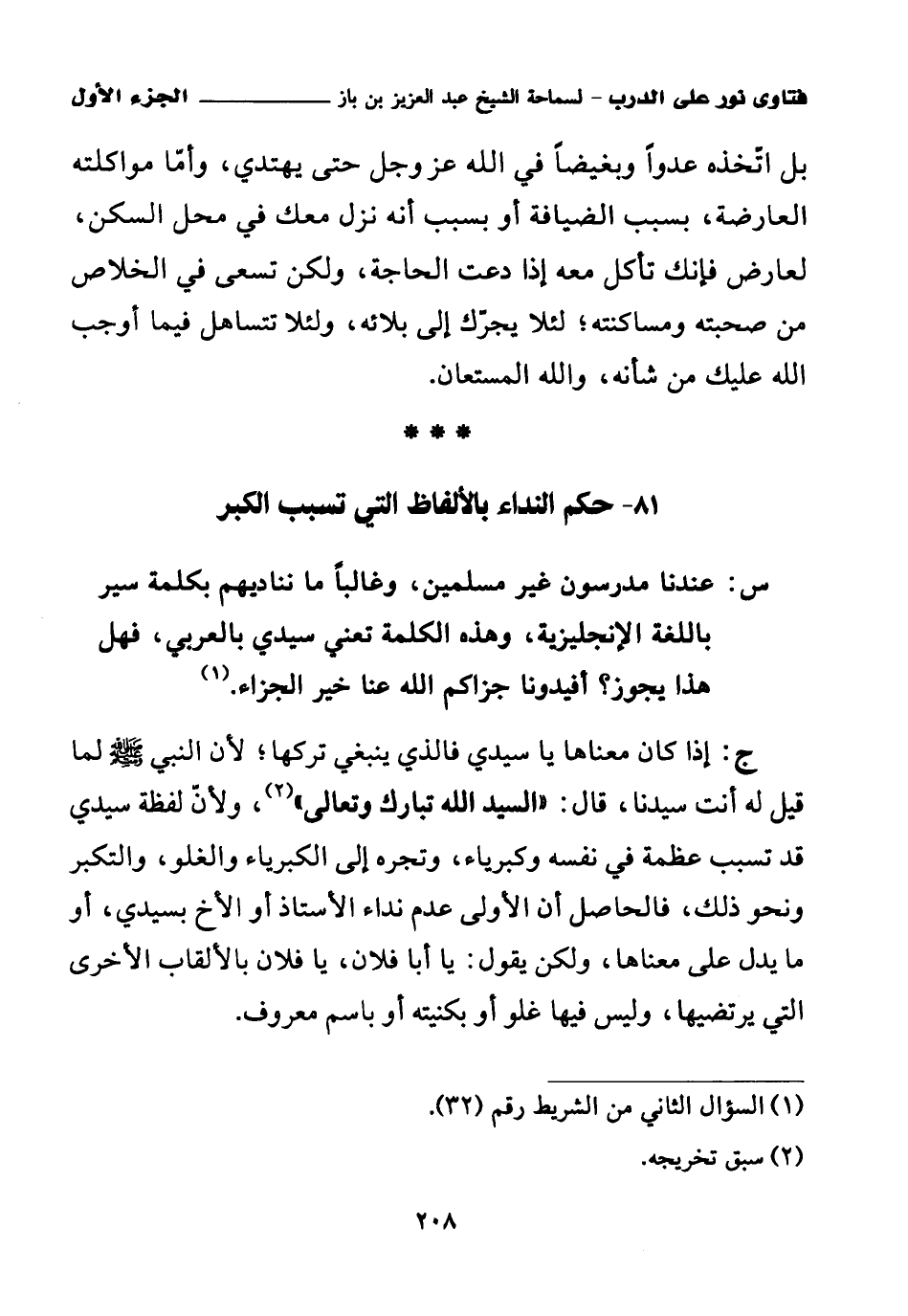 81 - حكم النداء بالألفاظ التي تسبب الكبر
